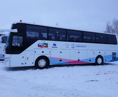 - Проезд на автобусе туркласса «NEOPLAN/MAN, YOUTONG, HYUNDAI, НIGER, ZHONG TONG,MERCEDES, SETRA,KING LONG» 47-57 мест, отопительная система, TV, откидные ортопедические сиденья;